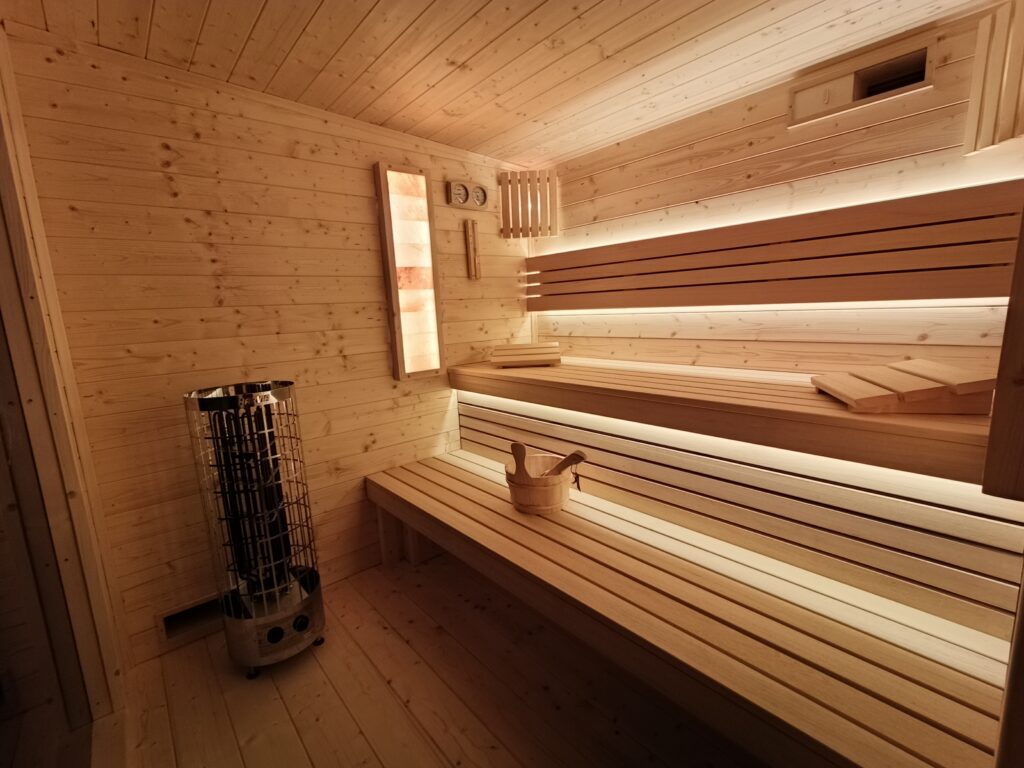 - wykończenie z drewna o znikomej zawartości żywicy (świerk skandynawski), do zastosowania w tradycyjnych saunach fińskich
