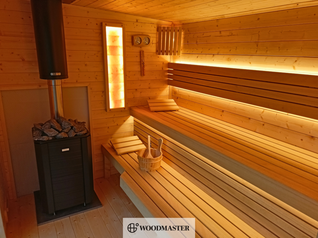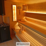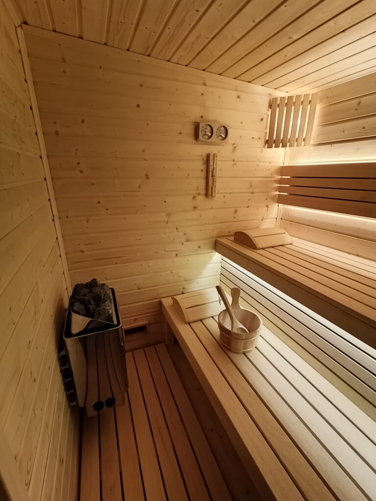 - ściany o grubości 150 mm, starannie zaizolowane wełną skalną gr. 70mm (zmniejsza to straty energii w saunie, pozwalając oszczędzać czas i pieniądze na ogrzewaniu)