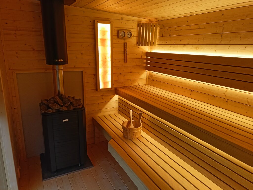 - ściany o grubości 150 mm, starannie zaizolowane wełną skalną gr. 70mm (zmniejsza to straty energii w saunie, pozwalając oszczędzać czas i pieniądze na ogrzewaniu)