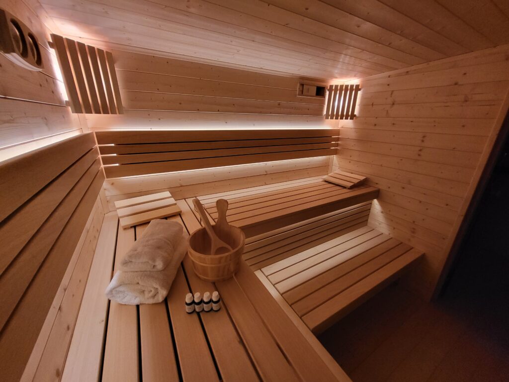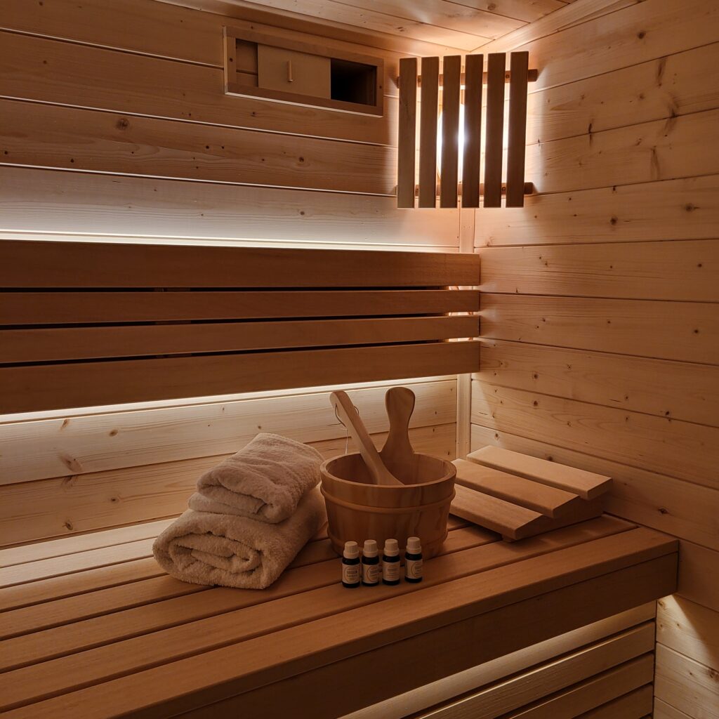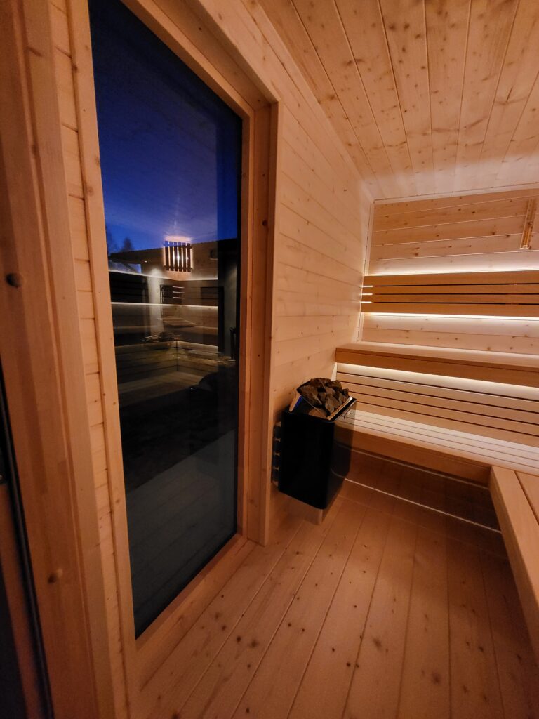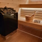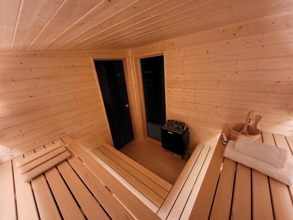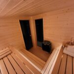 - ściany o grubości 150 mm, starannie zaizolowane wełną skalną gr. 70mm (zmniejsza to straty energii w saunie, pozwalając oszczędzać czas i pieniądze na ogrzewaniu)