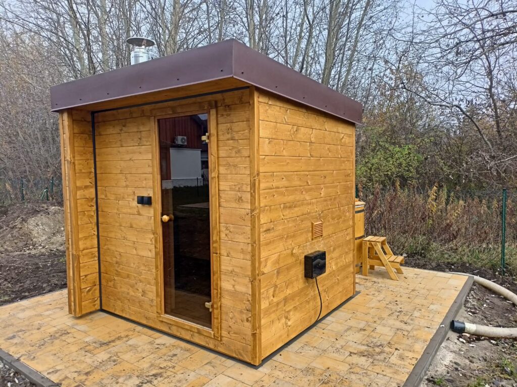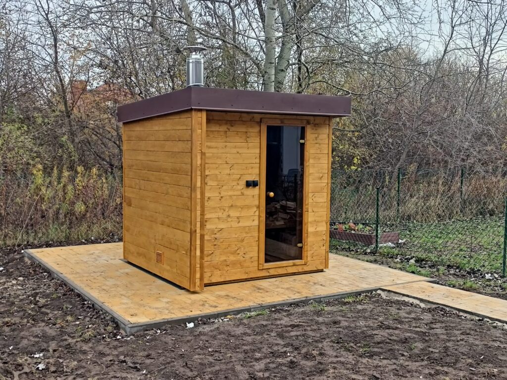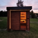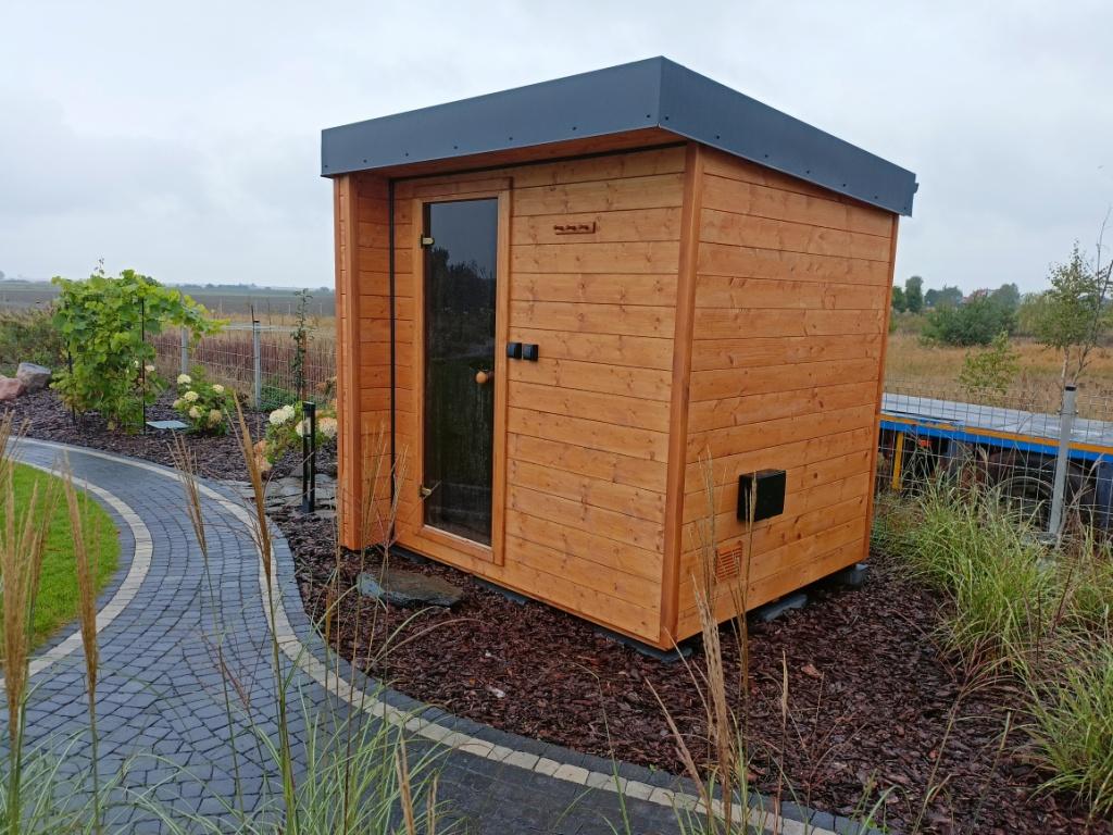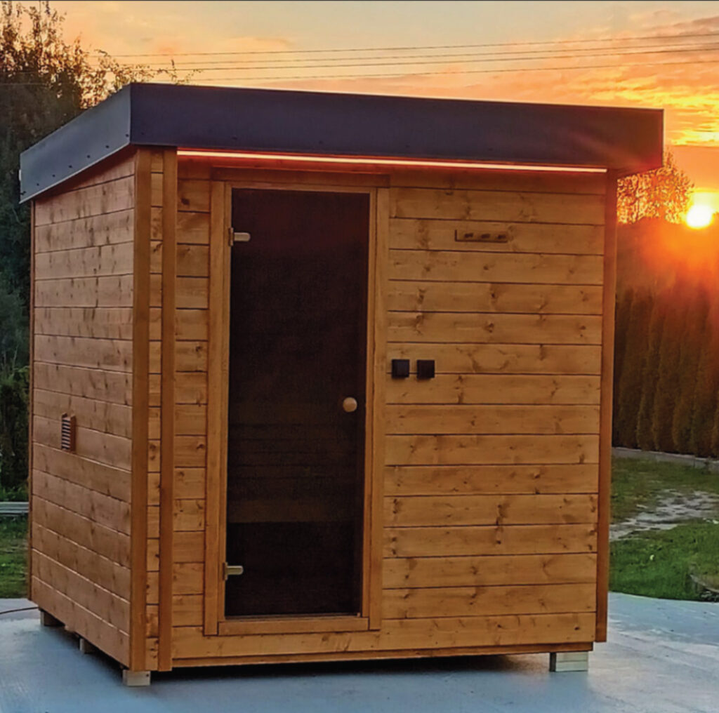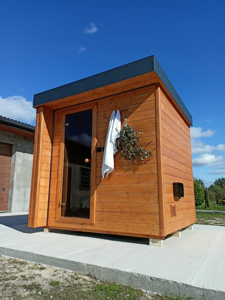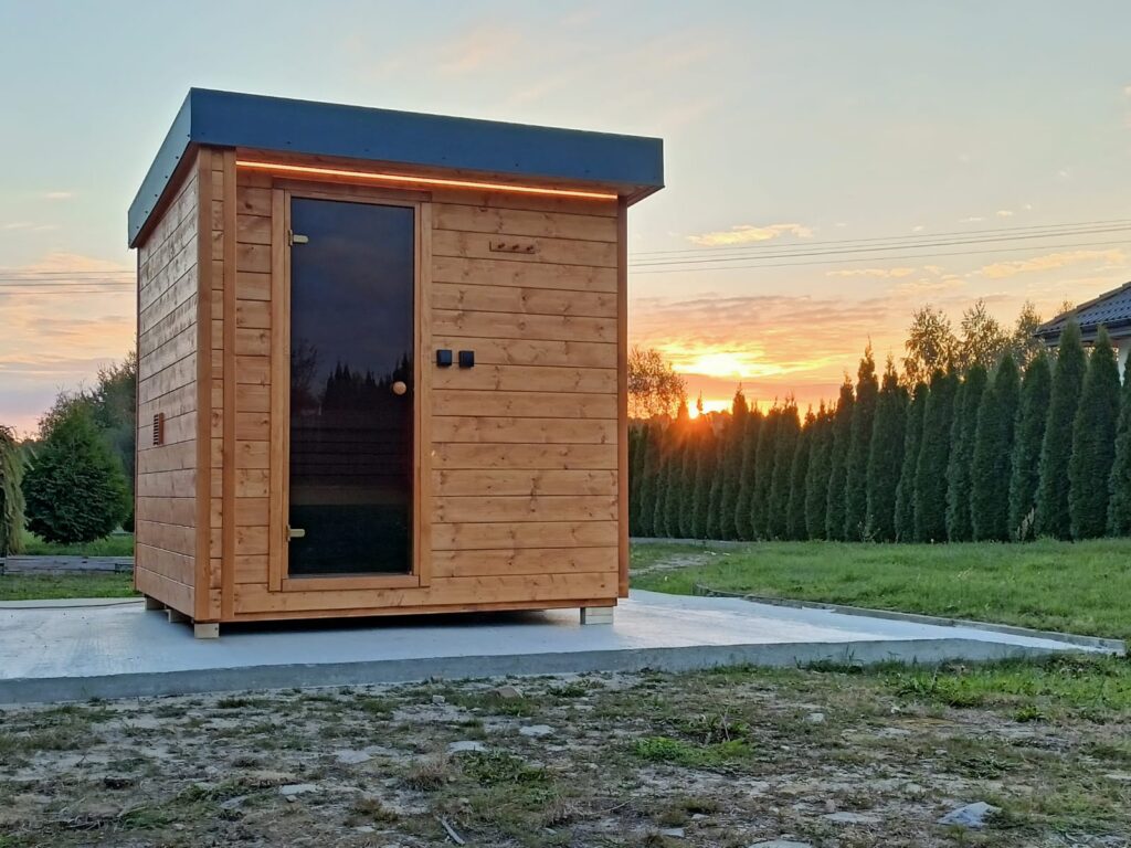Kompaktowa sauna, która komfortowo pomieści dwie osoby w pozycji leżącej i cztery osoby w pozycji siedzącej
